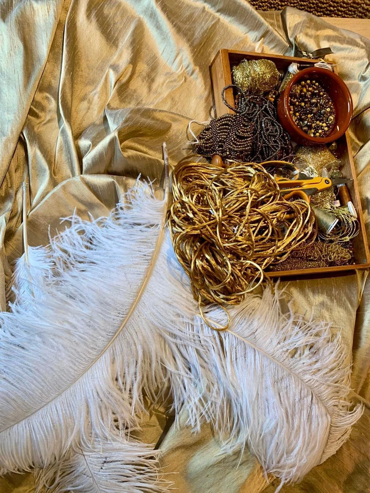 Vintage beads, sourced for their character and patina will be sewn one at a time throughout the composition. Each bead carries evidence of age and craftsmanship, contributing a layer of history and rarity that cannot be replicated.